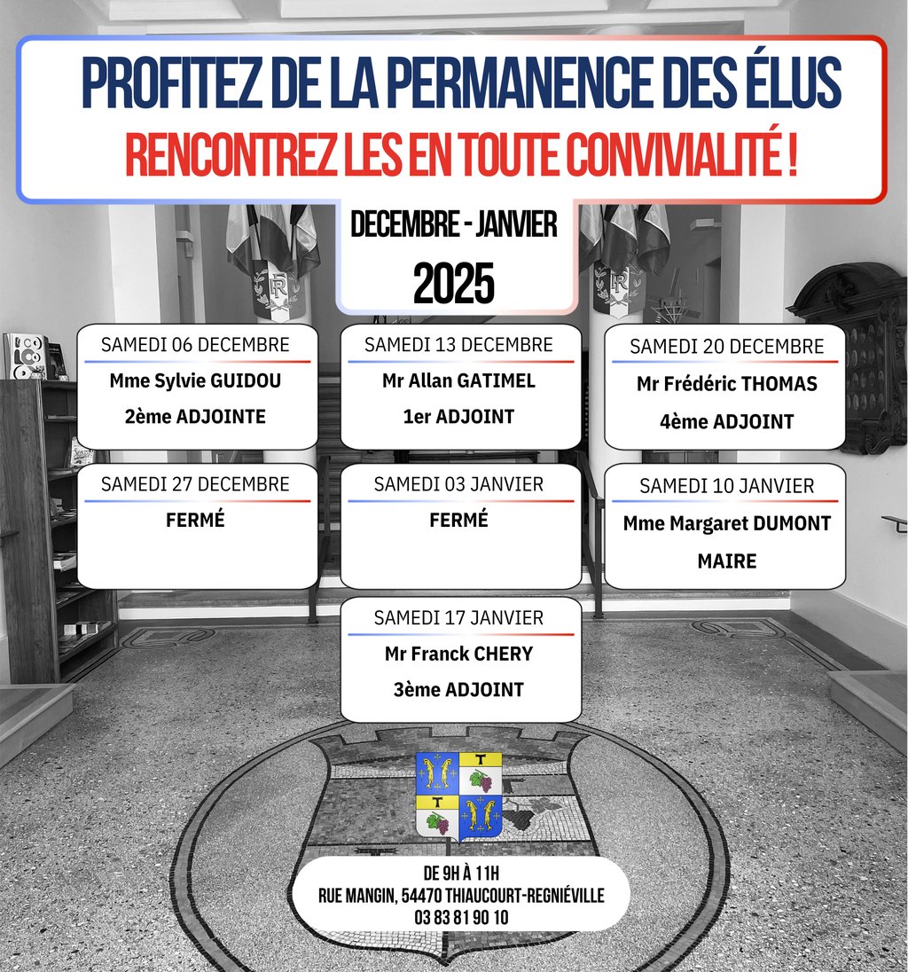 🗣️ PROFITEZ ET RENCONTREZ LES ÉLUS LORS DE LA PERMANENCE DE DÉCEMBRE/JANVIER 2025