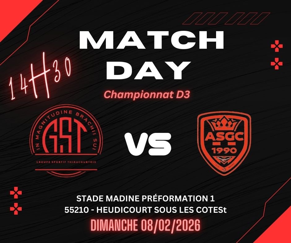 Le championnat D3, GST Thiaucourt contreASGC, aura lieu au Stade Madine à Heudicourt sous les Cotes pour 14h30.