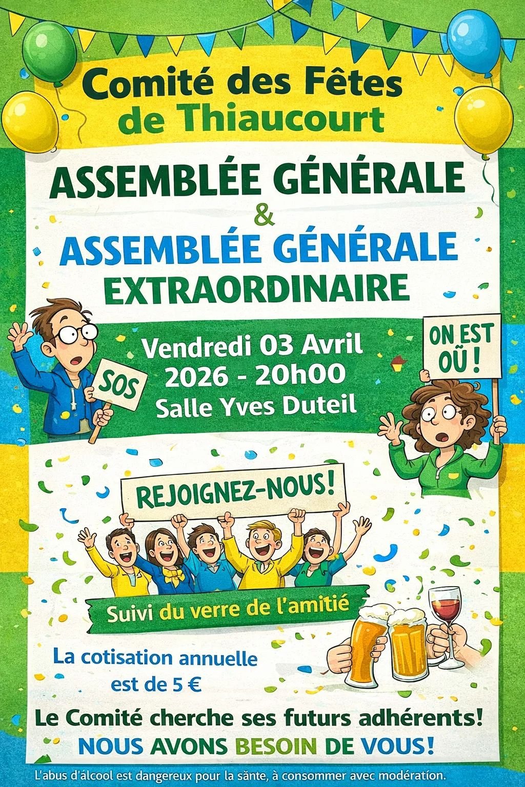 Le ComitĂ© des FĂȘtes de Thiaucourt vous donne rendez-vous pour son assemblĂ©e gĂ©nĂ©rale⊠et il a besoin de vous ! đ