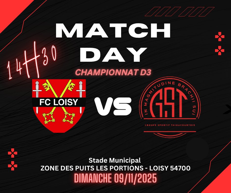Le championnat D4, GST Thiaucourt contre FC Loisy, aura lieu au stade municipal de Loisy à 14h30.